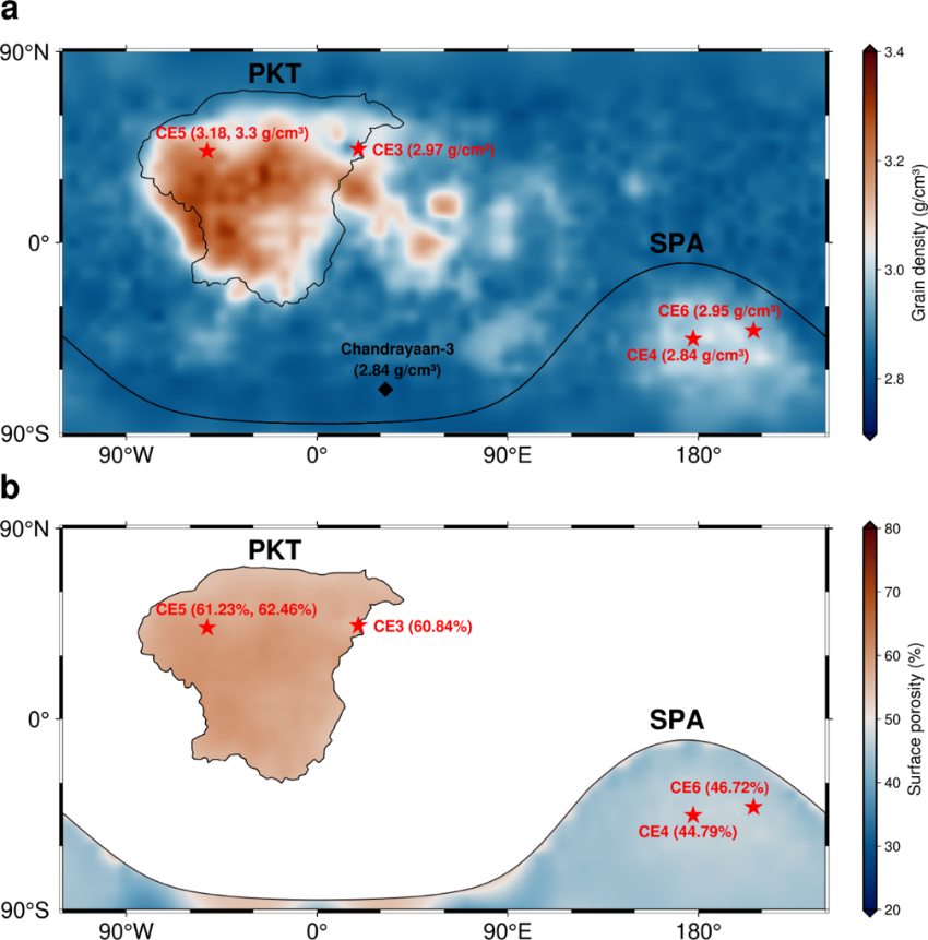 中国科学院地质与地球物理研究所行星内部结构与过程研究组相关人员对嫦娥6号获取的月球背面南极-艾肯盆地的样品的密度和孔隙度进行了测量,结合已有的月球其他区域的样品测量数据、遥感数据和地球物理模拟手段,开展了全月三维密度和孔隙度结构的研究工作。